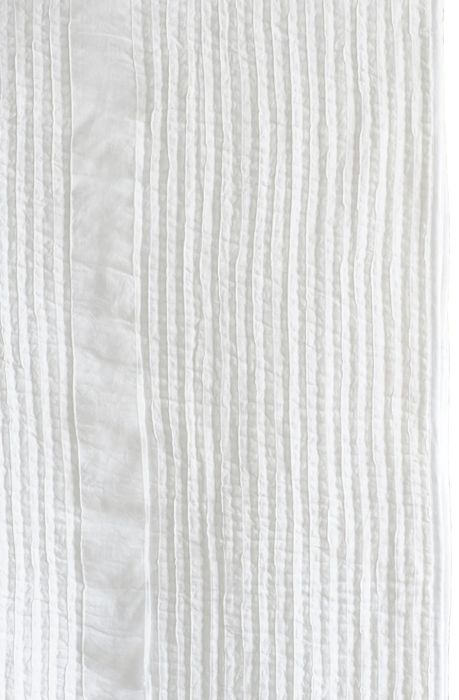 Repeated pin tuck lines and accents of hand quilting adorn a serene white blend of linen and cotton. The oldest recorded colour, white was first documented in Paleolithic art when calcite and chalk were used to draw crisp, clean lines. Representing purity, beginnings and cleanliness, Puritsu white nods to early human art in its linear form whilst embodying our perception of light without any hues.